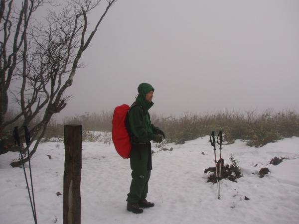 雨の中、荷物を積み込み車に乗り込むと同行者の渡辺から 「天気が悪いですがどうします?」とのメールが届く。「とりあえず行きましょう」と返す。「すぐに準備します」と返ってくる。どうやら中止を期待していた様子。甘い、甘い。この程度の天気では諦めないのです。3時間あれば山頂を踏めると見ていたので、午前中にやっつけてお昼ご飯にタラ汁を食べて温泉でのんびりという目論み。予想通りの展開でしたが雨がひどくなってきた下りはやっぱり辛かったです。今度は天気の良い日に歩きたいです。