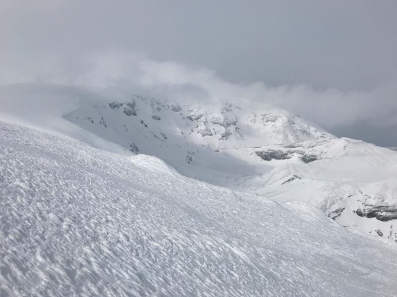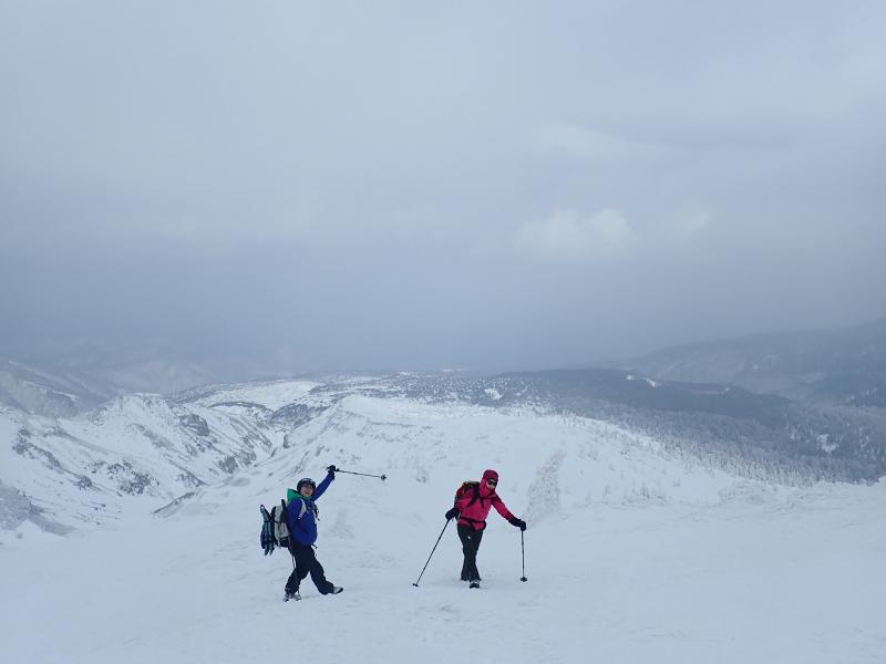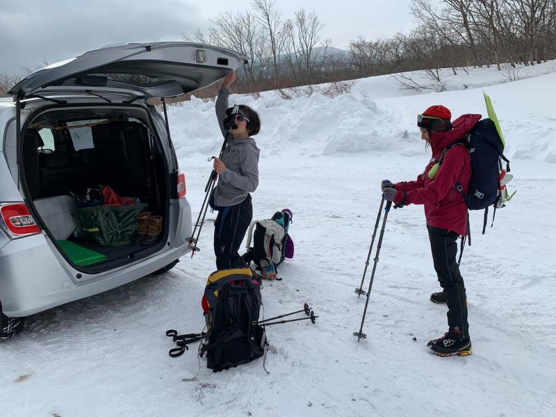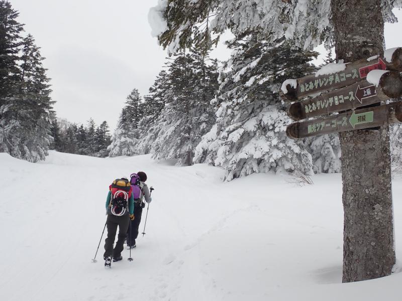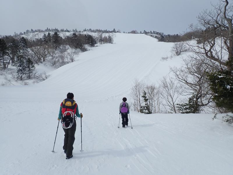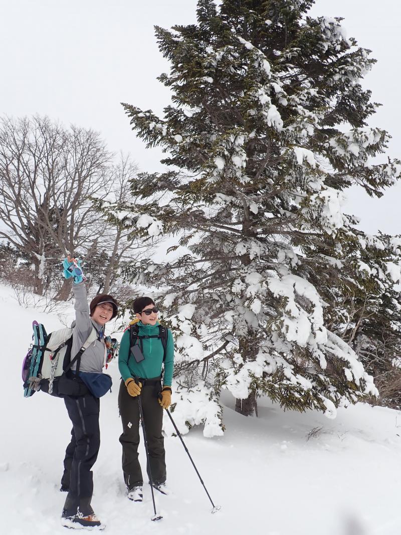 雪がよく締まっていたので歩きやすかった、時々踏み抜きありますがわかん使用せず。