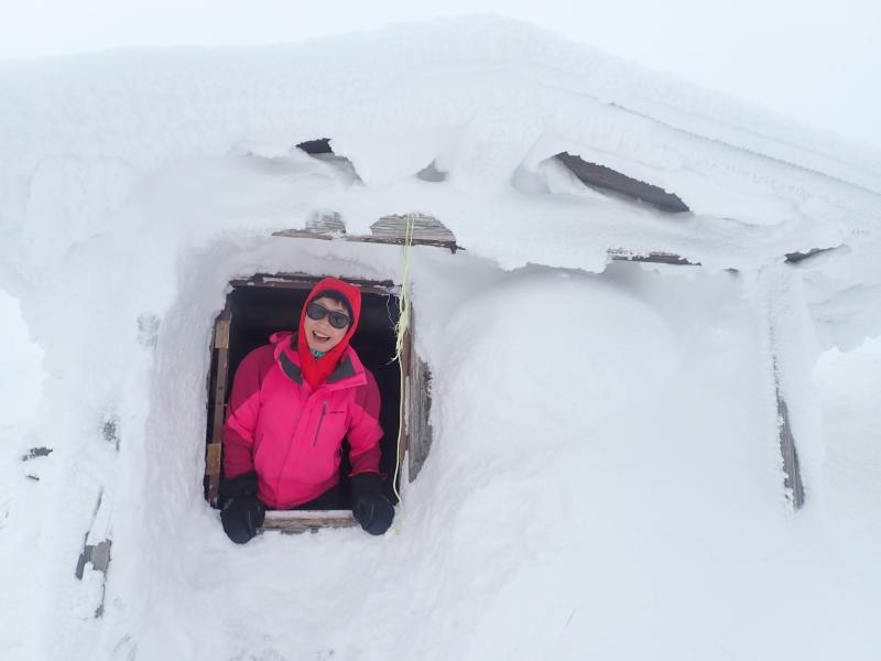 しばし山頂を楽しんだ後、避難小屋をお借りして休憩。