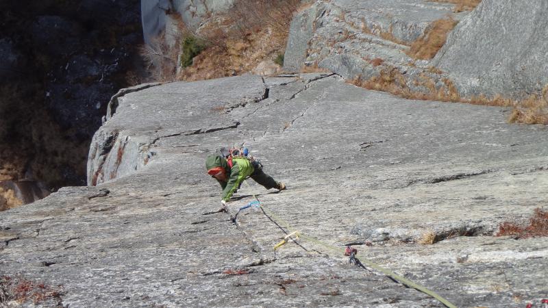 またこの日は強風で、石や大きい枝が落ちてきて危なかったのでビレイヤーはもちろん、クライマーもヘルメットの着用をオススメします。(僕たちはヘルメットを一つしか用意してこなかったため、クライマーはヘルメットを着用しておりません)