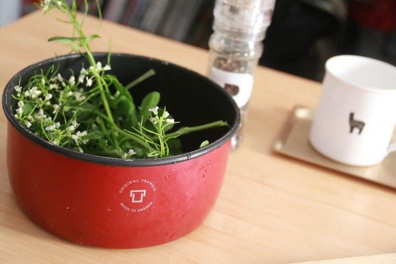 クレソンはサラダと炒め物。豚肉とトマトと一緒に白ワインとオリーブ油で炒めます