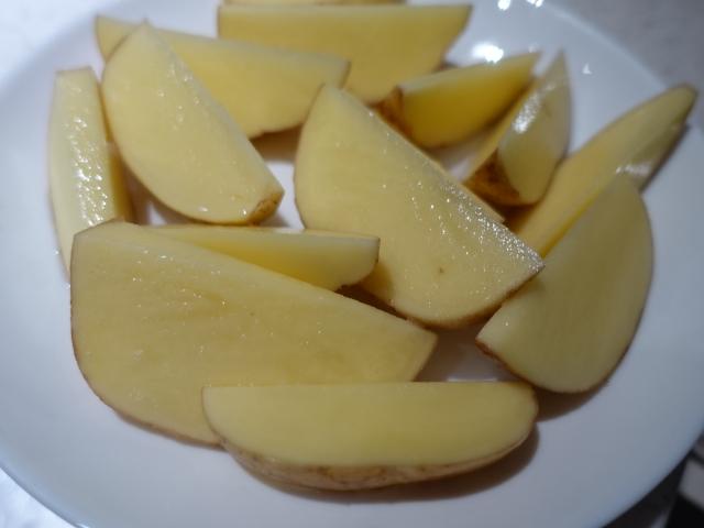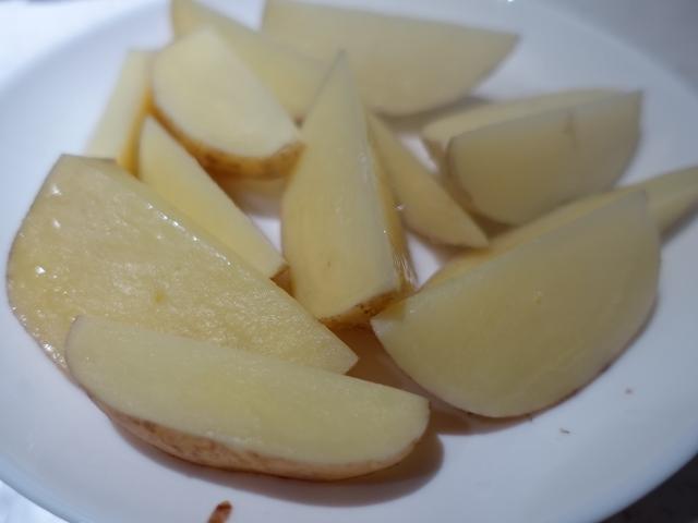 1)じゃがいもはよ~く洗って皮は剥かずに8等分に切り分けました(6等分だとちょっと厚かったです)