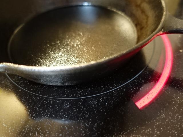 3)スキレットを中火目安で温めます(IHコンロを使いました)
