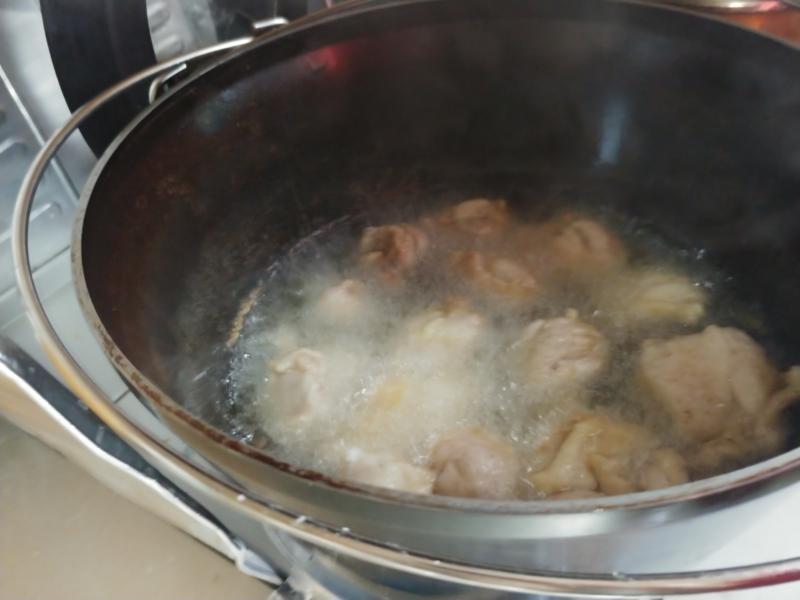 ダッチオーブンで作る唐揚げはフタをすることにより圧力がかかり外はカリッと中はジューシーに仕上がりそれはそれは美味しいのです!