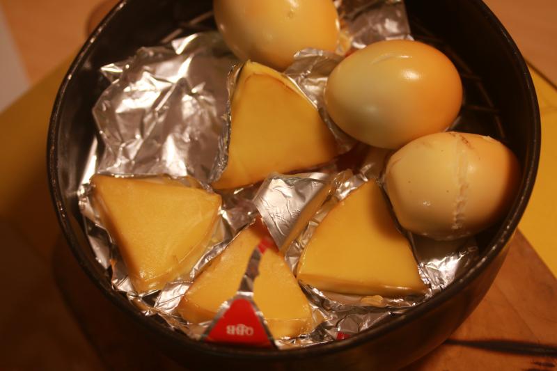 今回は前回失敗した、チーズと卵で温燻でやってみます。