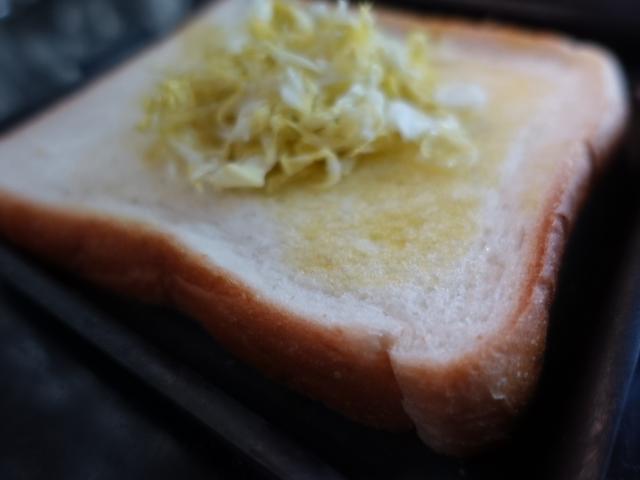 1)自分はシナシナのキャベツが好きなのでパンを焼く前にトーストサンドパンを分割してフライパンのように使ってキャベツを軽く炒めています ここは食感のお好みで