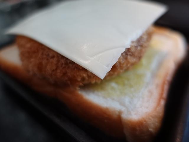 3)炒めたキャベツその上にメンチカツもチーズも乗せて、キャベツで挟んでフタをむぎゅーっと