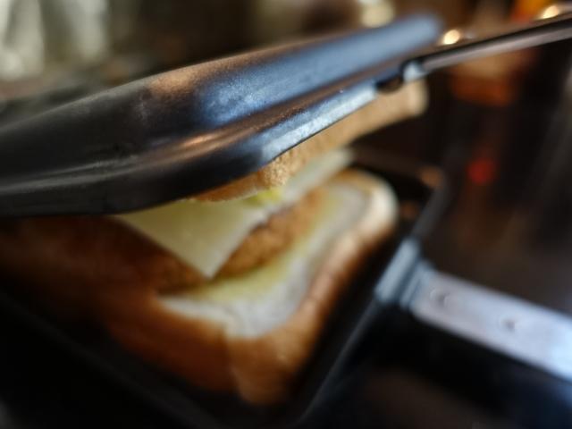 OUTiDOORおうちどあ第9回 メンチカツを使ったガッツリホットサンドです