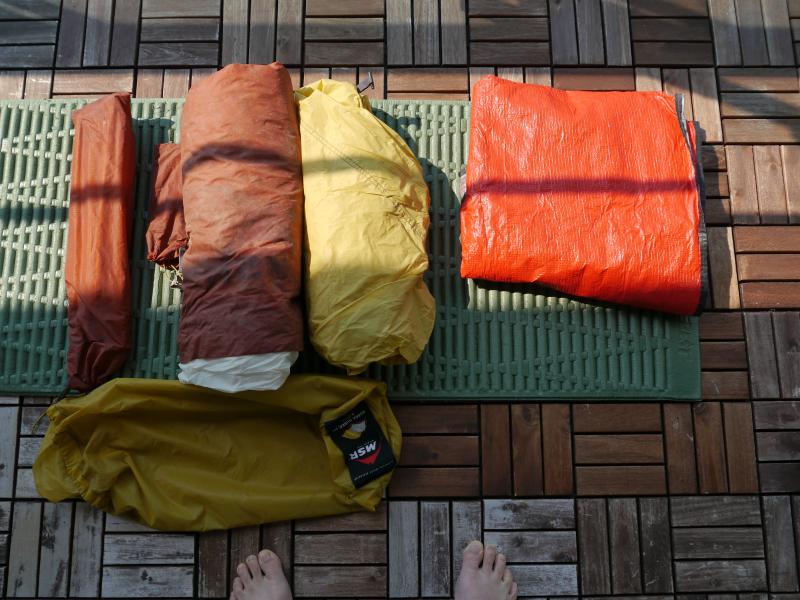 山に行きたい、テント泊したい、でもまだ行けない。それではと、お家でテントのメンテナンス。