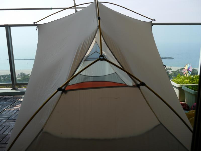 ・設営は慣れているので3分程度です、ペグダウンできない(ベランダですから)のでフライシートはきれいに張れなかったです。