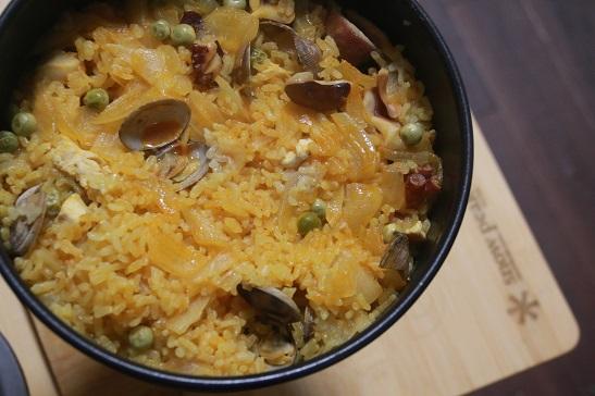 前日アサリが安価だったので、冷凍の明石の蛸と「パエリア」にしてみました。
