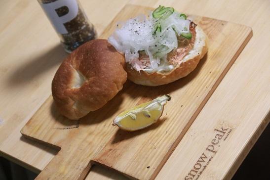 更に眠れぬ夜は、前回の燻製サーモン、クリームチーズのベーグルサンドを作りました。