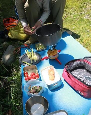 昼食はメステインで燻製塩鮭で炊いたご飯、「ネマガリタケ」でランチタイムをとりました