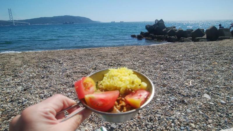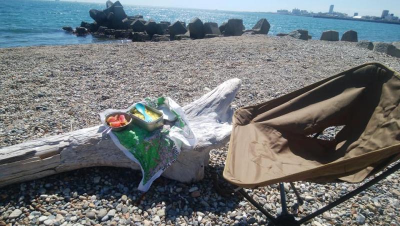 夏日です。海は風も涼しく、久しぶりに「ヘリノックスチェア」でまったりご飯を楽しみました。