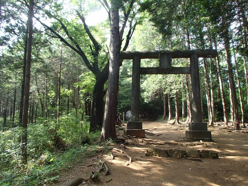 ・走ってきた影響もあってか、下山開始早々に膝が・・・。ゆっくり下ります。二の鳥居に着くと10人以上の登山者が!登ってきたときはそんなにいなかったのに、夕方近くになりやや涼しくなってくるとやっぱり身近な山には人が集まるんですね。