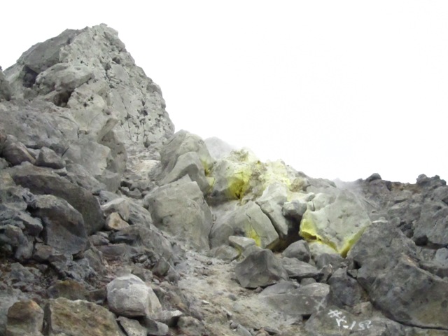 北アルプス唯一の活火山です。頂上までの道のりでは硫黄の匂いが漂っておりました。