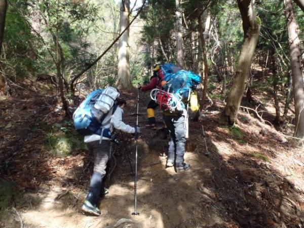 ルート上に木の枝があるため、ザックを引っ掛けないように注意が必要です。