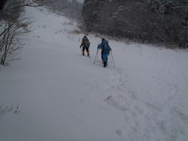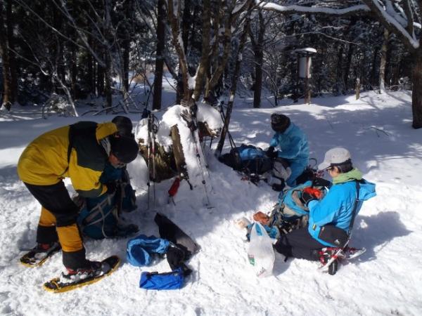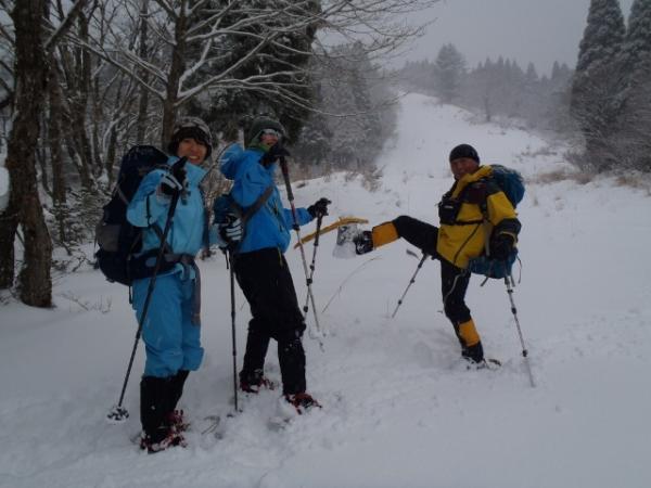 夜のうちにも積雪があり、武奈ヶ岳までのルートはスノーシュー&ワカンで新雪を思う存分楽しめました。