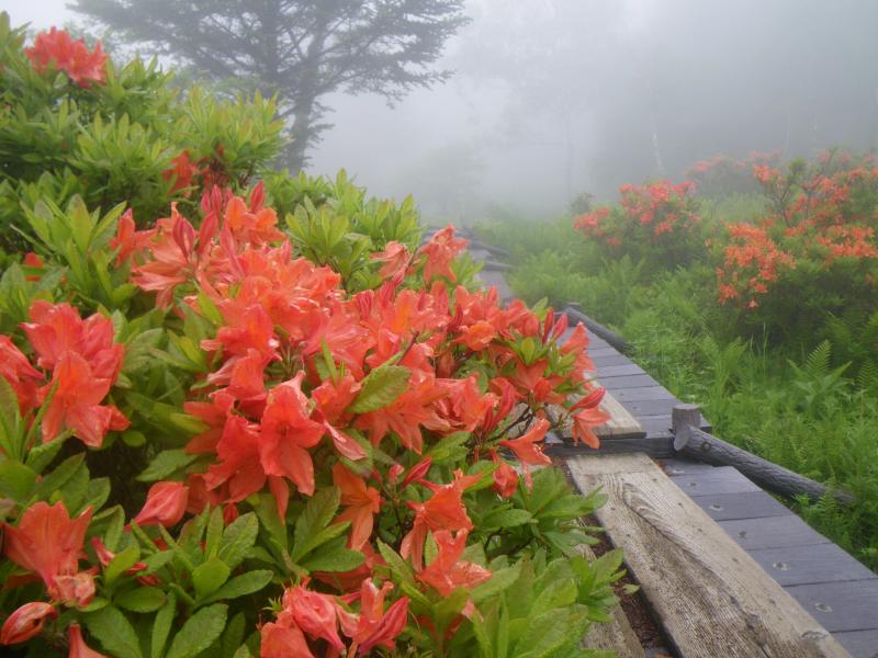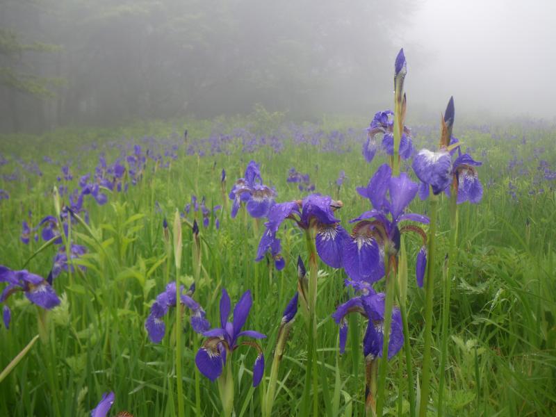 富士見パノラマのゴンドラを使えば、一気に入笠湿原まで上がれ、そこから山頂は短時間で到達できますが、今回はマイカー規制手前の沢入から登りました。うっすら霧がかかり、思ったより短時間で着いた入笠湿原も全貌がわからず。しかしながら、山で始めて見るスズランは小さく、可愛らしい姿ですが、なかなか画像に収めるのは難しい。3割くらいは盛りを過ぎた感じで、代わりにレンゲツツジやアヤメやクリンソウがこれから旬を迎える感じでした。山頂までは緩やかな登山道が続き、短時間で登頂できましたが、本来見えるはずの八ヶ岳パノラマが全く見えずじまい。