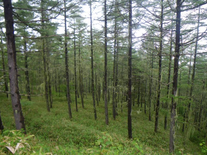 大阿原湿原からテイ沢に下る予定でしたが、入笠湿原で花の時間が長すぎて、そのまま林道経由で戻ることにしました。テイ沢の分岐まできた時に周りの雰囲気が苔が生える幻想的な雰囲気だったので、テイ沢方面はおそらく行く価値がありそうなだと想像できました。