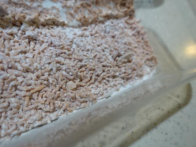 3)ベビースターラーメンを袋の上から細かく潰し片栗粉とよく混ぜ衣を作る