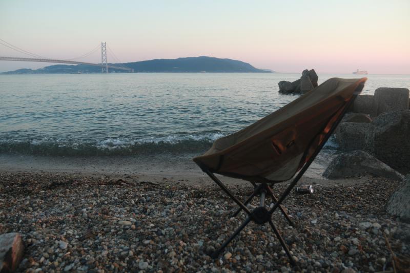 夕方はお酒を飲みながら夕焼け。ヘリノックスが大活躍です。
