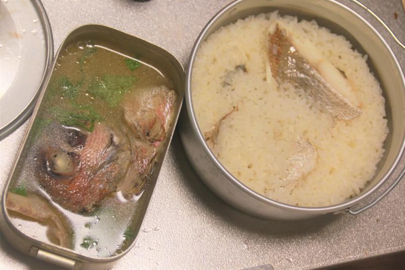 outidoor ビリーコッヘルとメステインで鯛飯と鯛の潮汁