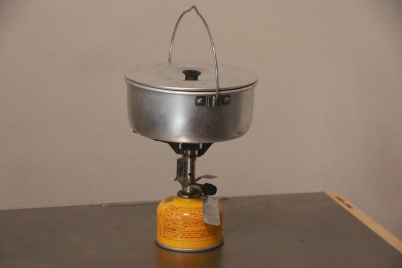 ビリーコッヘルで炊きました。アルミなので軽く、伝導率よくお米が立つ感じに上手に炊けました。