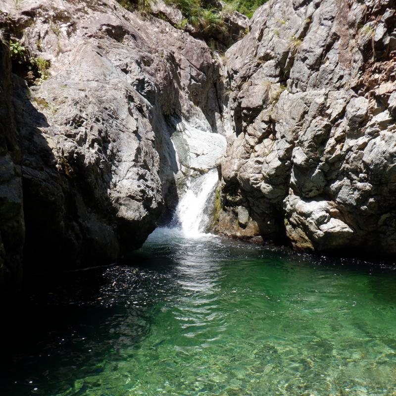 高度差があり多くの滝をもつが、ゴルジュは浅く高巻きの苦労も少ないので、中級者向けとされます。