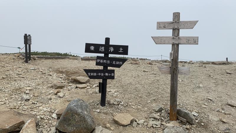 - 1日目…千畳敷駅→40分→乗越浄土→20分→中岳→15分→頂上山荘テント場→15分→木曽駒ヶ岳→15分→テント場
