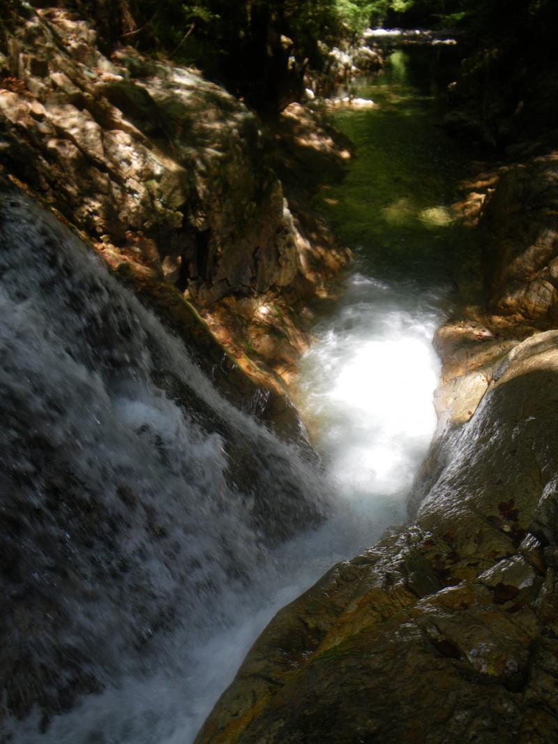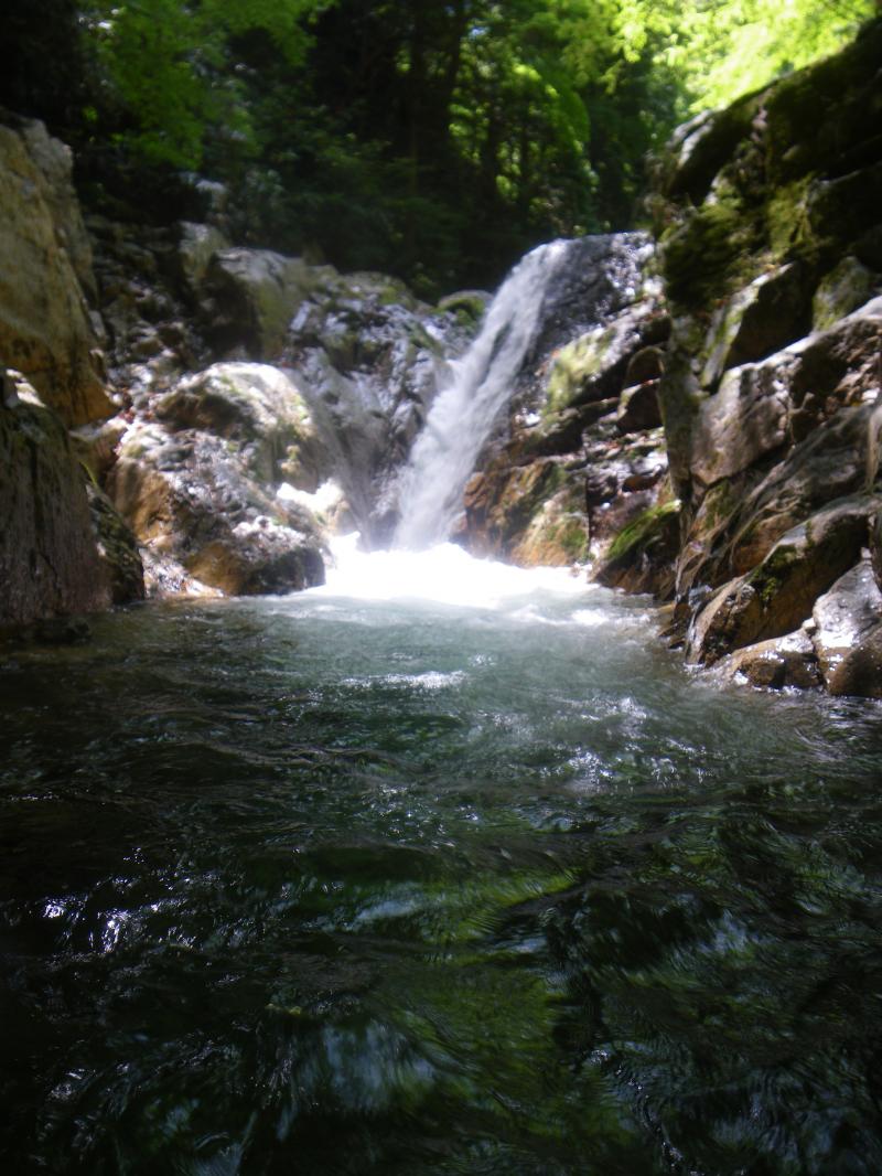 ➄長淵60mは滝の手前までは立てるくらいで奥の6m滝の釜が深くなります。ここも簡単にまけます。