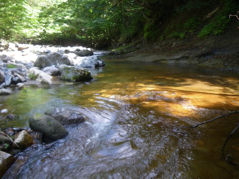 時間が許せば一日かけて、ここからさらに上流部まで行くのもいいと思いますが、次の入渓点までヤブの林道歩きが待っています。小屋前の支流を適度に遡行するのもいいでしょう。