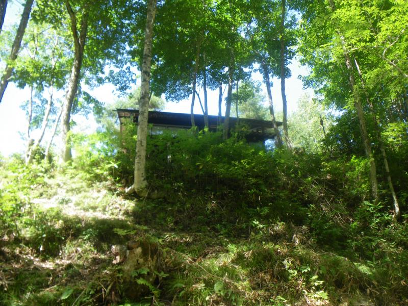 ➅二股の左岸上に植林小屋が見えたら終了で小屋に上がる道もございます
