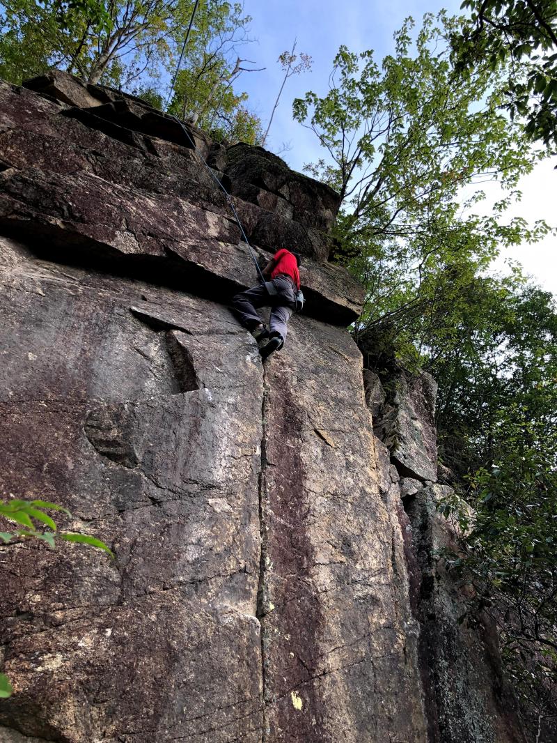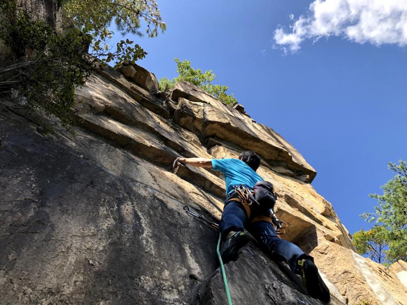 「メザシ 5.10a/b」に挑戦するもすごく難しくて、リードでは登れる気がしなく、東さんにトップロープをかけてもらいました。