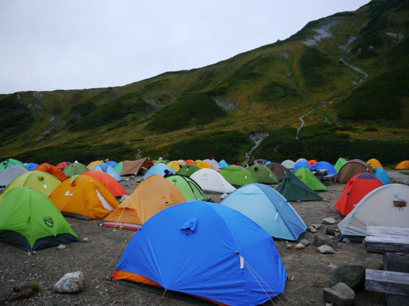 - ・テント泊と稜線縦走なので中級としますが、雷鳥平キャンプ場はテント泊デビューには適したテント場です。