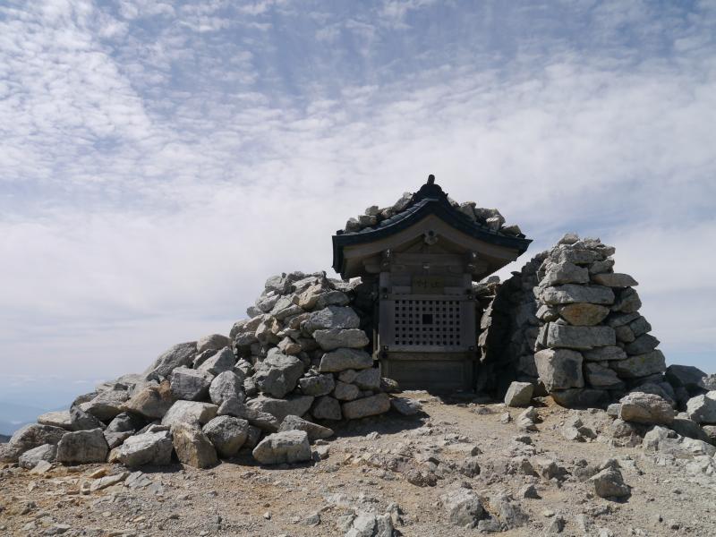 - 2日目:雷鳥平キャンプ場(100分)一ノ越(60)雄山神社(20)大汝山(15)富士ノ折立(30)真砂岳(50)別山南峰(10)北峰(30)剱御前小舎(65)雷鳥平キャンプ場