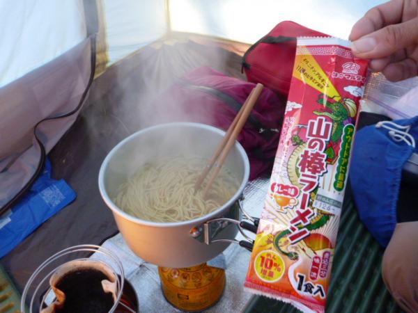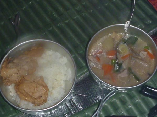 頂上から雲取山荘までは日蔭になり道も凍っているのでここで6本爪を装着。ゆっくり下っても30分くらいですが安全が優先です。小屋に到着。今回はアライテントの“ゴアライズ3”を使用。昼間の暖かさが嘘のように気温が下がり指先がかじかんできました。まだ明るくても午後になると雲取山荘は日蔭になるの素早くテントを設営し冷えた体を珈琲で温めます。その後、夕飯の準備に取り掛かる。今夜のメニューは“生姜焼き丼”と“豚汁”です。いや~美味い。そしてもちろん食後に珈琲を淹れまどろみます。