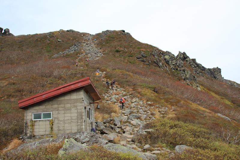 お天気は曇り。綺麗な8合目休憩所でお手洗いを済ましてから出発。