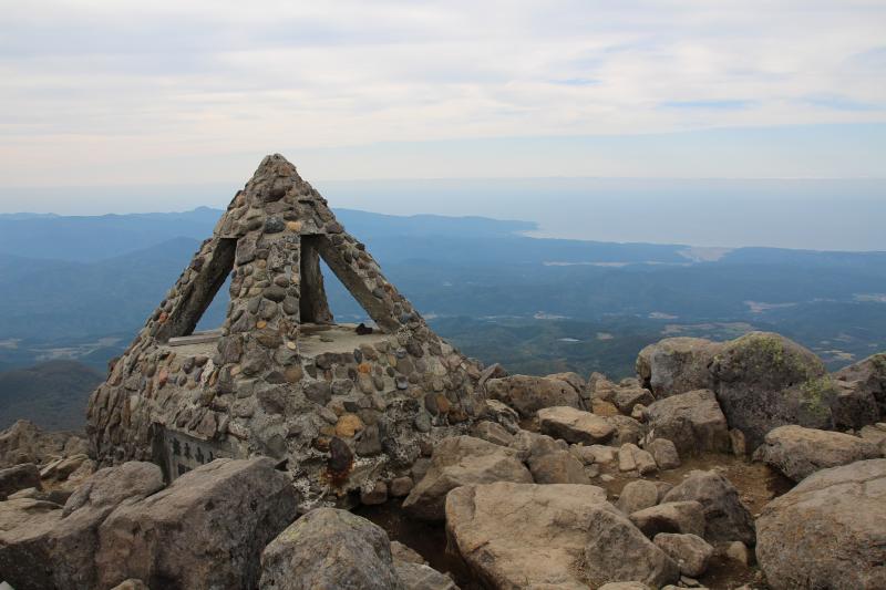 山頂は変わった形をした三角点があり、中に鐘が設置されていたので、2.3回「登ったぞ~」という気持ちで鳴らしてみました。