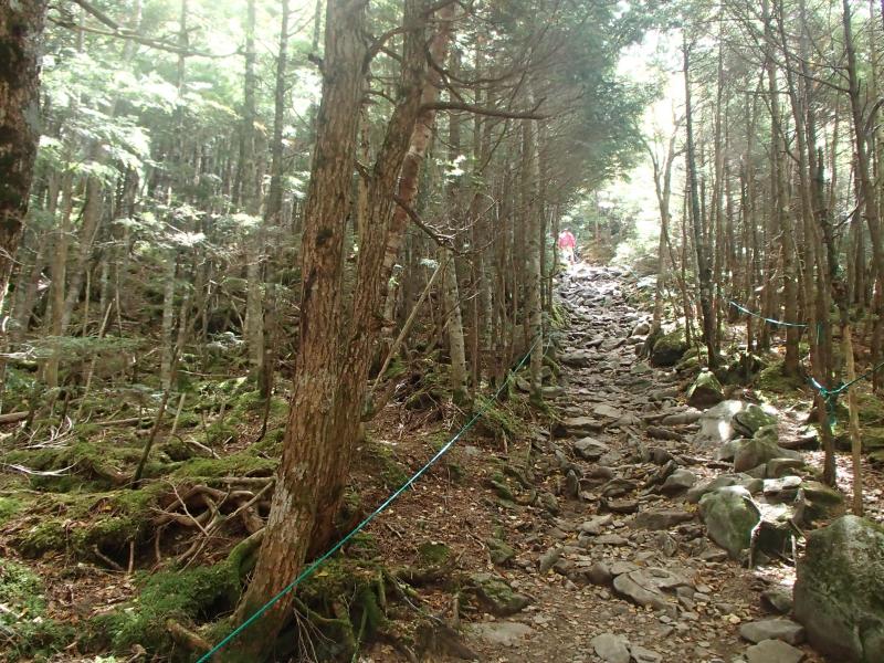 ・先行のグループが前を空けて下さったので、将軍平まであっという間に下ってきました。全く疲れていないのでそのままスルーして進みます。ここから先はガレの急な下りなので転倒注意です。