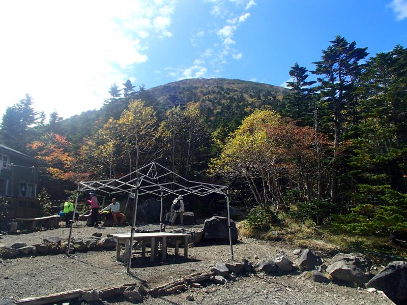 ・岩場の最後は蓼科山頂ヒュッテがお出迎えです。前回はスズラン峠側から登ったので、ちょっと不思議な感覚でしたが、以前の会話を思い出し、「あぁ、みんなこっちから登って来てたんや」と納得。ちょっと休憩しようと思いましたが、一気に気が変わるものが目に入ってきました!