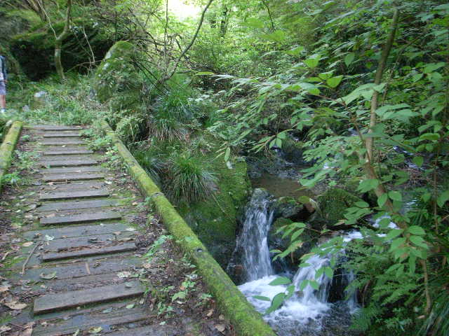 駐車場の先、道路脇の道標に従って沢を渡って対岸の登山道へ。