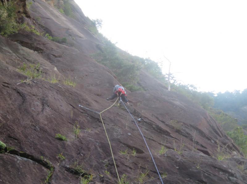 1ピッチ目はやさしいスラブを登って草付きをトラバース。