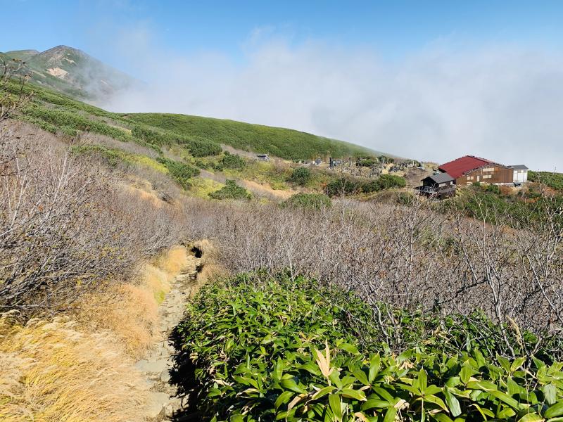 中の湯とロープウェイの分岐手前辺りで子熊を見かけました。熊は時期的に冬眠前で気が荒くなっている上に木の実が不作とのことです。熊鈴を持ち歩く、食品の匂いを出来る限りさせない等対策は必須です。