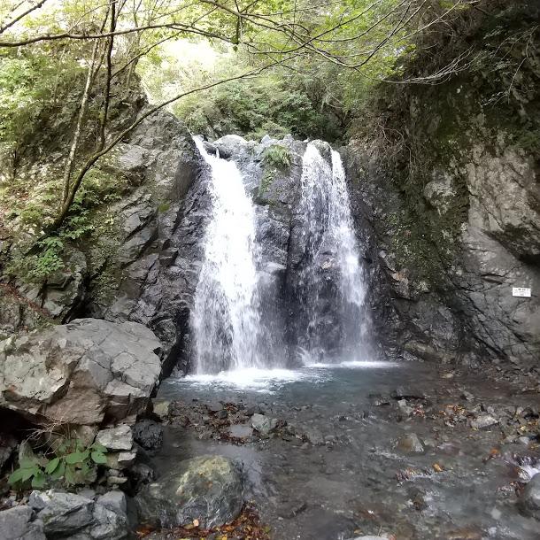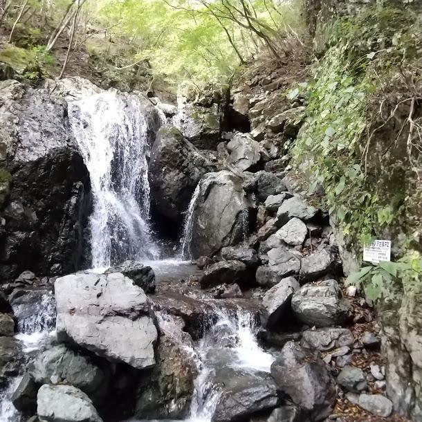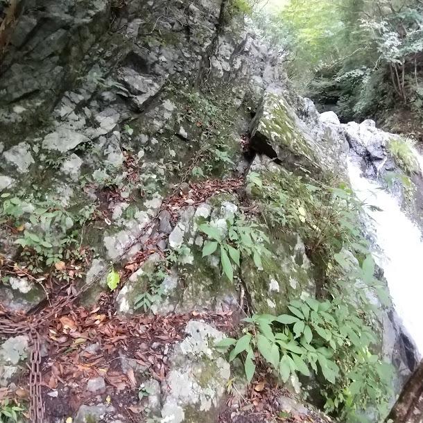 水無川本谷と同じ1本目の滝は左に鎖があります。