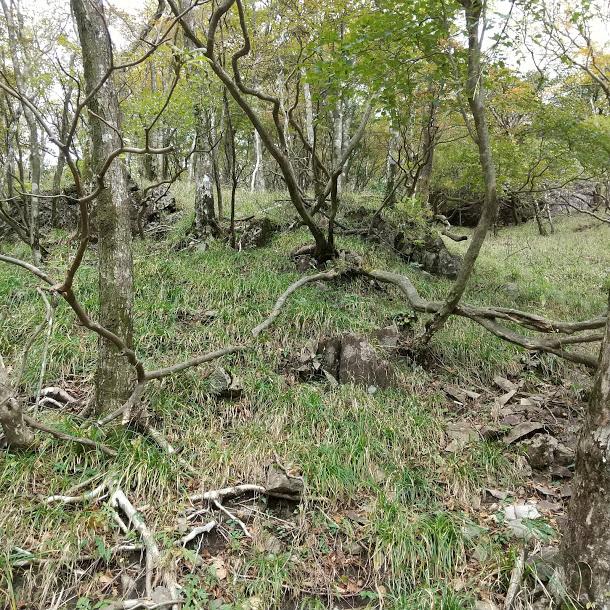 鉱山跡は右から巻いていきますが、グズグズで落石に注意しながら登ります。