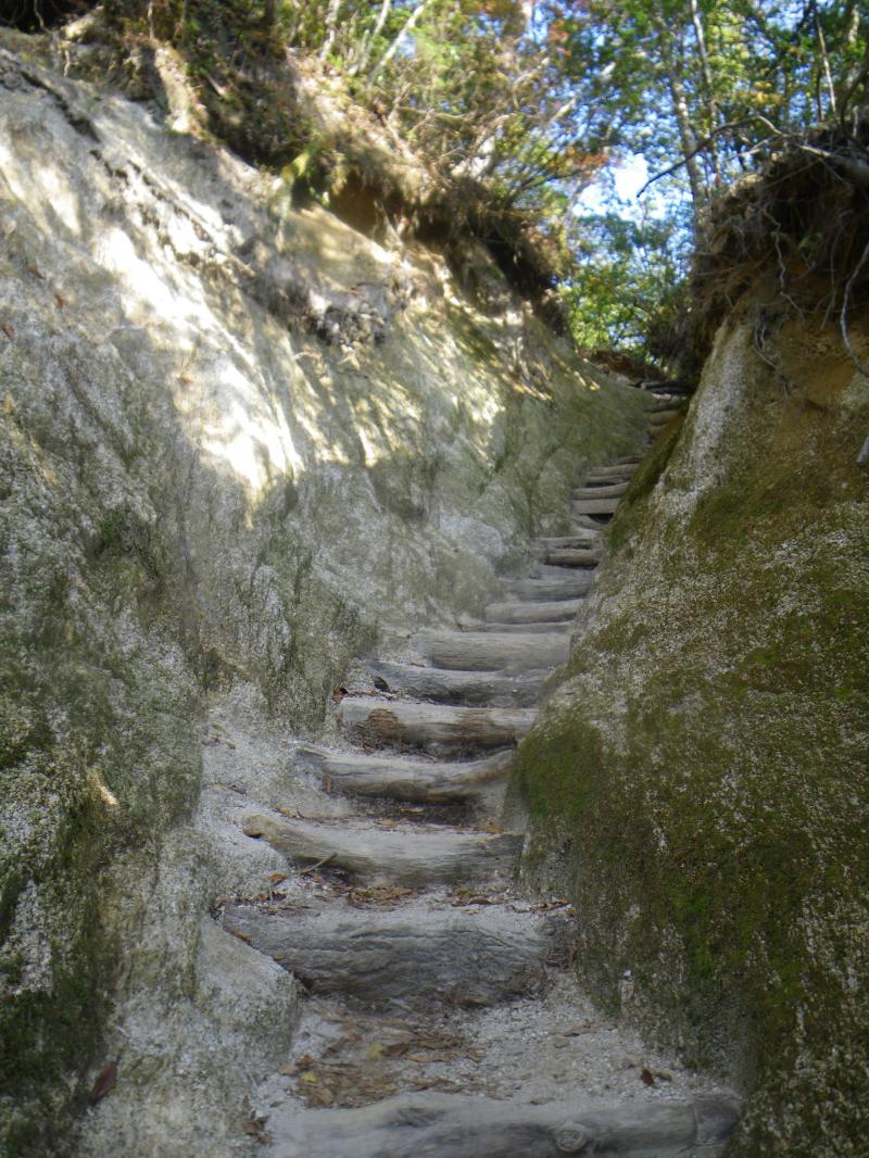 ➂中道は前半は溝のような両側がえぐれた登山道を歩きますが、ステップが切ってあったりと歩きやすいです