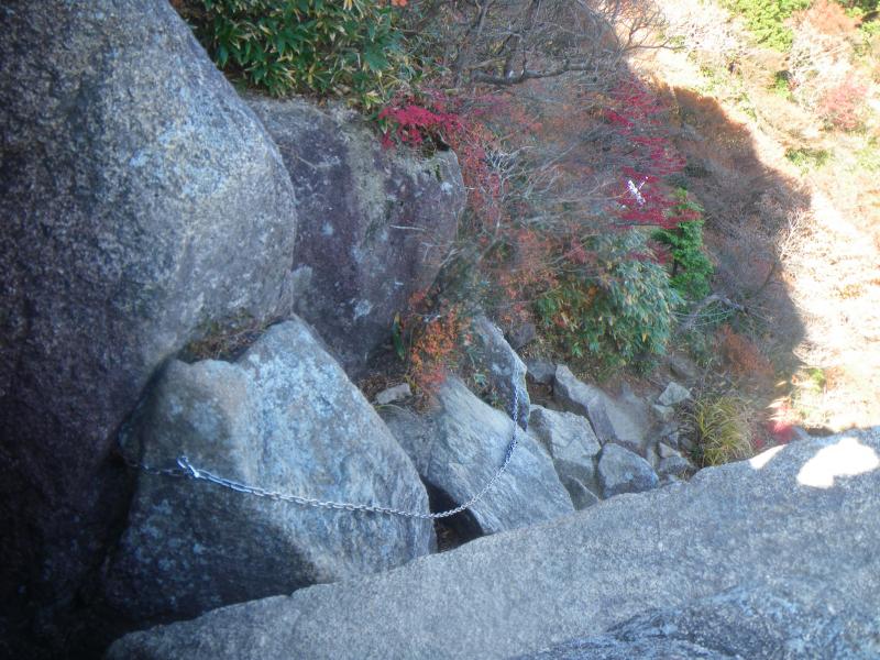 ⑪しばらくすると沢に下るトラバース状の鎖場があります