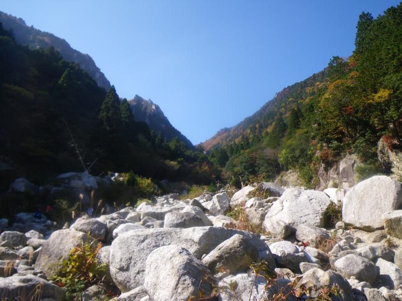 ⑫兎の耳で沢を横断し、ここから藤内小屋までは沢の中の岩のゴツゴツした道を進む