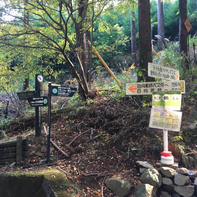 - 日向薬師バス停(10分)- 日向薬師(35分)- 九十九曲り入口(45分)- 見晴台(60分)- 大山山頂(35分) - 大山阿夫利神社下社(20分)- 大山ケーブルバス停